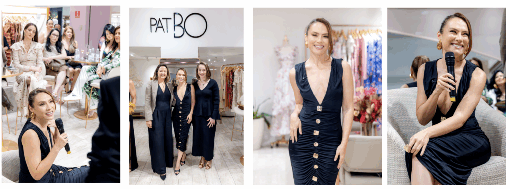 Um welcome drink na PatBO abriu o encontro, seguido de uma conversa incrível com a designer. Depois do bate-papo, todos seguiram para um jantar no restaurante Pobre Juan/ParkShopping. Patrícia trouxe nuances de sua história frente à PatBO, mergulhando na essência do fazer à mão, no impacto do artesanato como força criativa e no caminho que levou a marca a tornar-se a única label brasileira no calendário oficial do New York Fashion Week. A diretora criativa lembrou o começo em Uberlândia em um ateliê dedicado ao bordado e à costura manual.