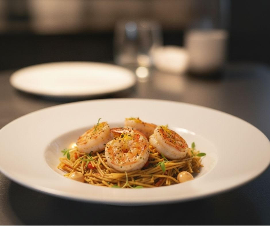 Legenda: O retorno do clássico Fideuá revela a alma histórica do Almería Beira Lago. Essa especialidade espanhola, nascida entre pescadores da costa da Valência e preparada com fideos em lugar de arroz, chega à nova fase da casa como gesto de memória e continuidade — um elo deliberado entre o passado afetivo e o presente gastronômico.