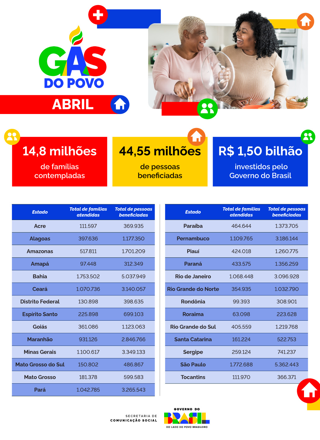 Regionalmente, o Nordeste concentra o maior número de famílias atendidas, com 6,76 milhões de lares, seguido do Sudeste (4,16 milhões), Norte (2,04 milhões), Sul (1 milhão) e Centro-Oeste (824,1 mil).