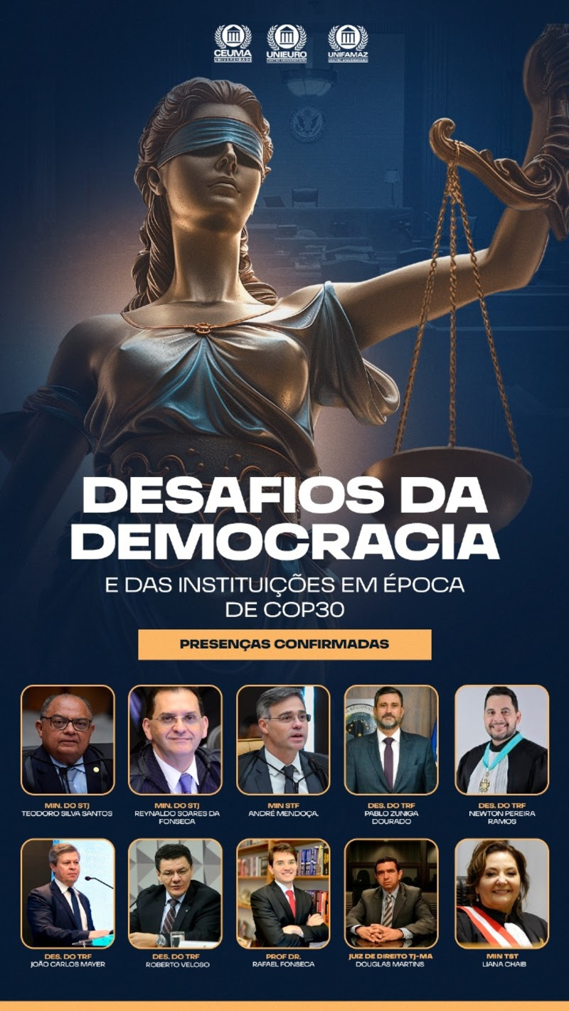 Em um cenário de intensos questionamentos sobre o papel das instituições e a transparência da Justiça, discutir democracia e cidadania se torna ainda mais urgente. O evento traz palestras que exploram os desafios contemporâneos, especialmente diante da agenda ambiental e de governança que estará no centro da COP30, em Belém, em 2025.