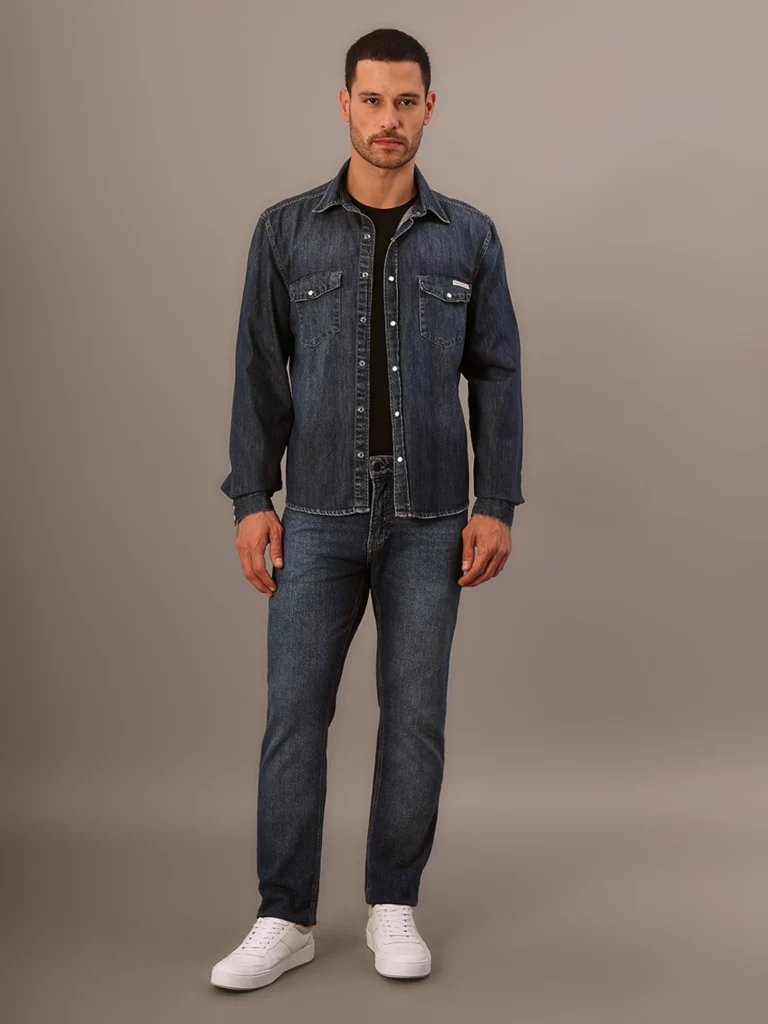 Na Calvin Klein Jeans, a coleção foi dividida em quatro entregas e traz, além dos clássicos best-sellers da marca, uma atualização de shapes e materiais. Entre os destaques estão as modelagens oversized e boxy, presentes em camisas, camisetas e casacos, além da forte presença de referências esportivas e do streetwear. O compromisso ambiental aparece no uso de algodão certificado GOTS, algodão regenerativo, linho e fibras premium como o algodão egípcio e o Pima, além das plumas Sorona nos casacos e puffers.