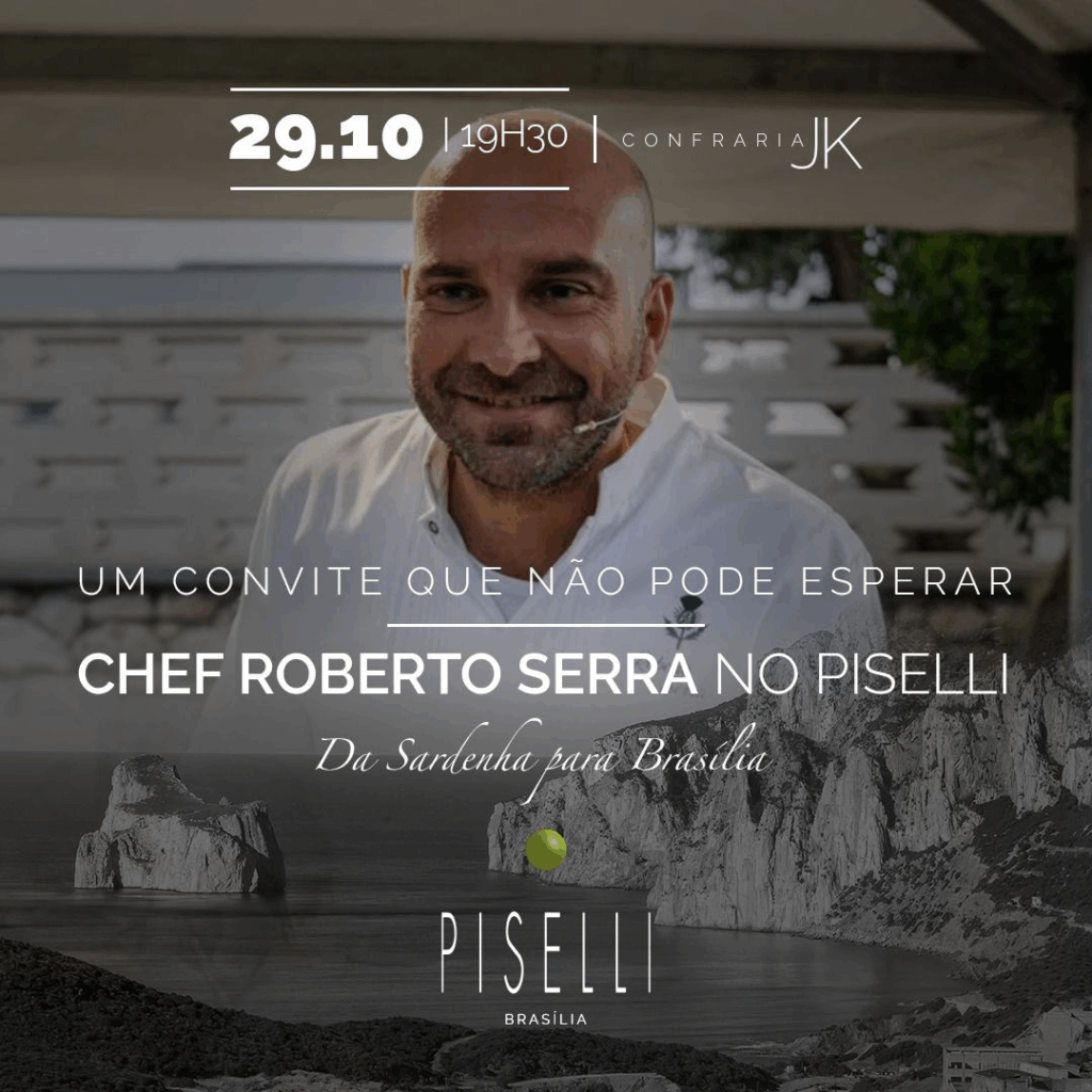 O Piselli Brasília recebe no dia 29 de outubro, às 19h30, uma das maiores referências da culinária sarda: o chef Roberto Serra, comandante do renomado restaurante Su Carduleu, na Sardenha. A casa ostenta 2 garfos do guia Gambero Rosso e uma cobiçada indicação Bib Gourmand do Guia Michelin.