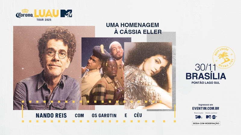 Muita gente pode até não saber, mas Brasília foi onde Cássia Eller iniciou sua carreira musical para marcar para sempre a história da música brasileira. Por isso, nada mais simbólico do que começar na cidade a turnê do Corona Luau MTV que homenageia a cantora com um encontro icônico de Nando Reis, Céu e Os Garotin.