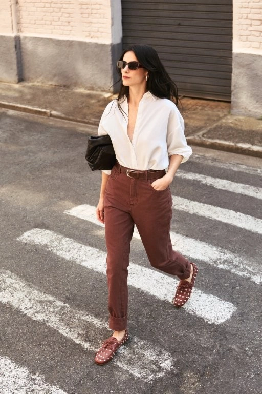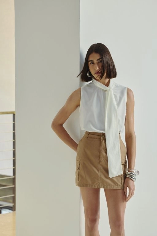 camisaria surge como um dos eixos centrais da temporada, com variedade de shapes e materiais. Tecidos como suede, superfícies com efeito empapelado e aplicações reforçam uma estética utilitária que se equilibra com elementos mais delicados. Na estamparia, clássicos como poá e listras ampliam as possibilidades de composição e reforçam o caráter atemporal da coleção.