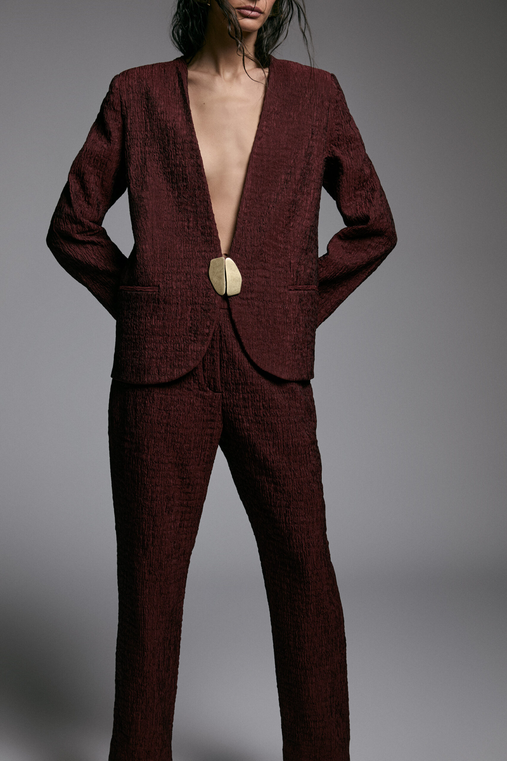 Mergulhando em uma estética intensa e um universo de mistério, o preview é reinterpretado sob uma lente contemporânea e apresenta peças de acabamento bem definido. A alfaiataria, assinatura da marca, ganha destaque com modelos preciosos e esculturais, que revisitam clássicos e exploram novas proporções, equilibrando modernidade e feminilidade.