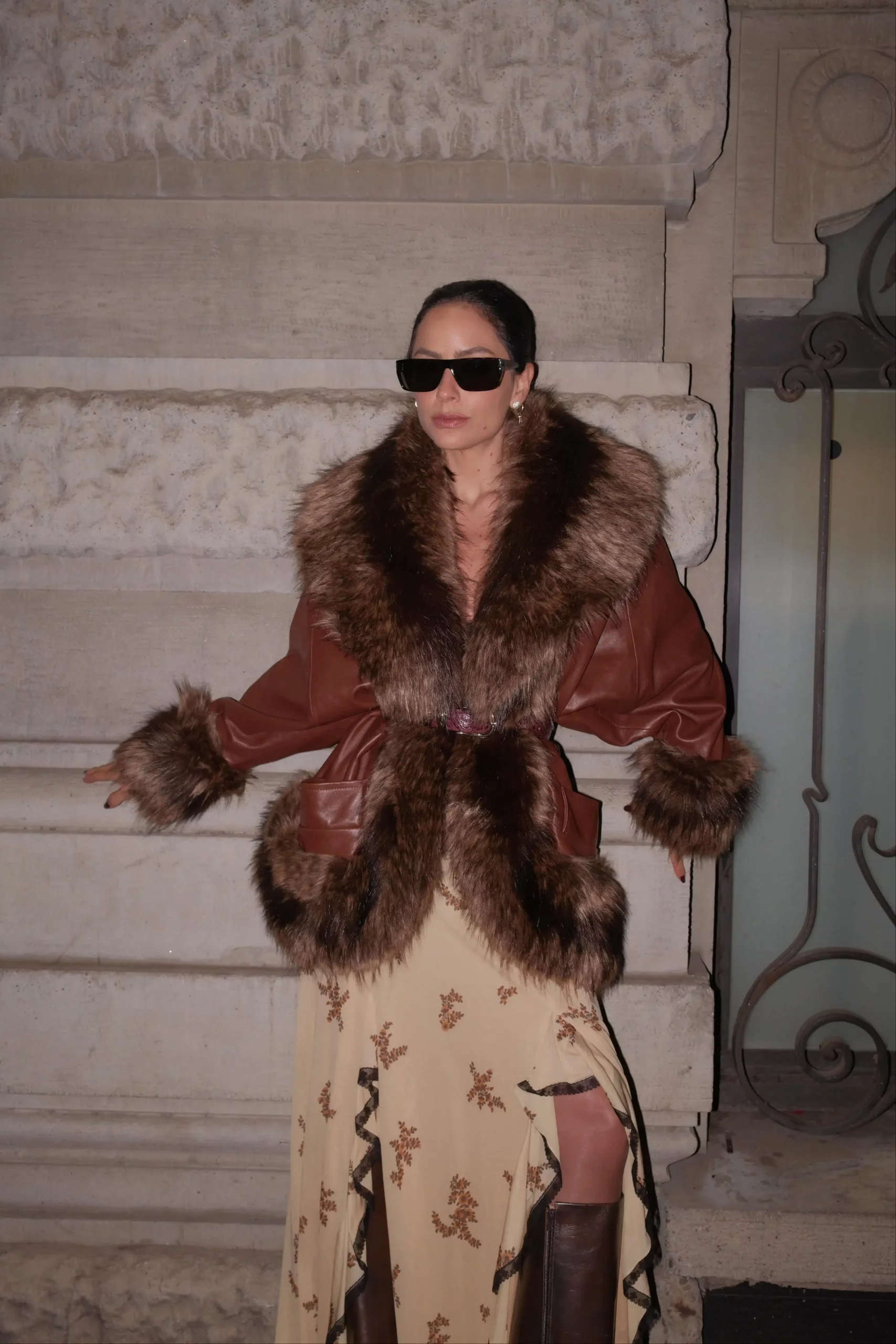 Para a ocasião, Lu optou por um mix entre sexy e tradicional, trazendo um look all black composto por um vestido longo de fenda, jaqueta de couro e botas de cano alto. Nos acessórios, a fashionista arrematou o look com brincos dourados de Saint Laurent e óculos escuros de Celine.