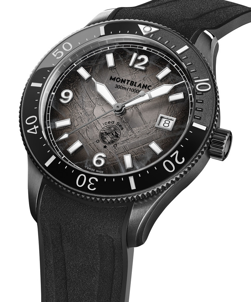 Para quem busca aventura a cada momento, o Montblanc Iced Sea Automatic Date 0 Oxygen, com mostrador cinza sfumato com padrão glacial, dá a impressão de estar olhando para as profundezas de uma geleira. Inspirado no Mer de Glace, essa textura glacial foi obtida usando uma técnica ancestral quase esquecida chamada gratté-boisé. O relógio é alojado em uma caixa de aço envelhecido de 41 mm, totalmente isenta de oxigênio, e possui um bisel giratório unidirecional com inserção de cerâmica preta, rebaixado a laser de 0 a 15 minutos, uma gravação 3D no fundo da caixa e uma pulseira de borracha preta intercambiável com sistema de ajuste fino. O relógio está em conformidade com a norma ISO 6425 para mergulho e possui resistência à água de 300 metros.