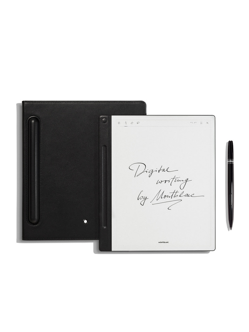 Recursos inteligentes fazem do Montblanc Digital Paper um companheiro essencial para a criatividade, produtividade e organização. O equipamento é ideal para anotações, textos escritos e apresentações, e-books e documentos. O conteúdo pode ser pesquisado e encontrado por meio de uma função de busca intuitiva com reconhecimento de escrita. Pensamentos e ideias podem ser estruturados com modelos como calendários, planejadores e diários, enquanto os arquivos podem ser compartilhados e recebidos facilmente por e-mail, USB-C ou usando os aplicativos complementares conectados à Montblanc Cloud.