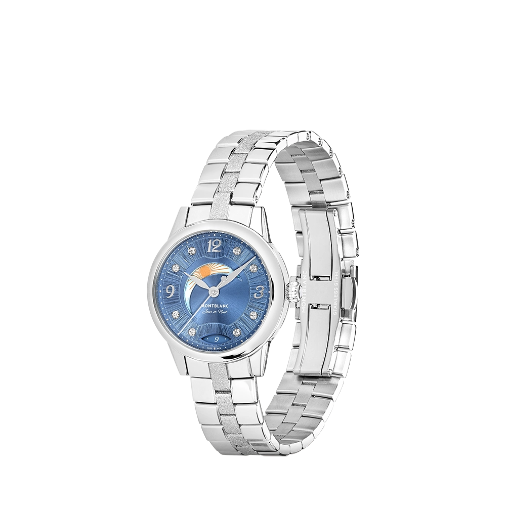 Acessórios que acompanham momentos de lazer com elegância e fluidez: bolsa On-Body Companion Grain Noisette, caneta rollerball Meisterstück Classique Branca e duas opções em relógios para escolha em diferentes ritmos: o Iced Sea Automatic Date 0 Oxygen todo em aço, para uma estética contemporânea e versátil, e o Bohème Day & Night com mostrador azul e pulseira de aço, que combina delicadeza e sofisticação