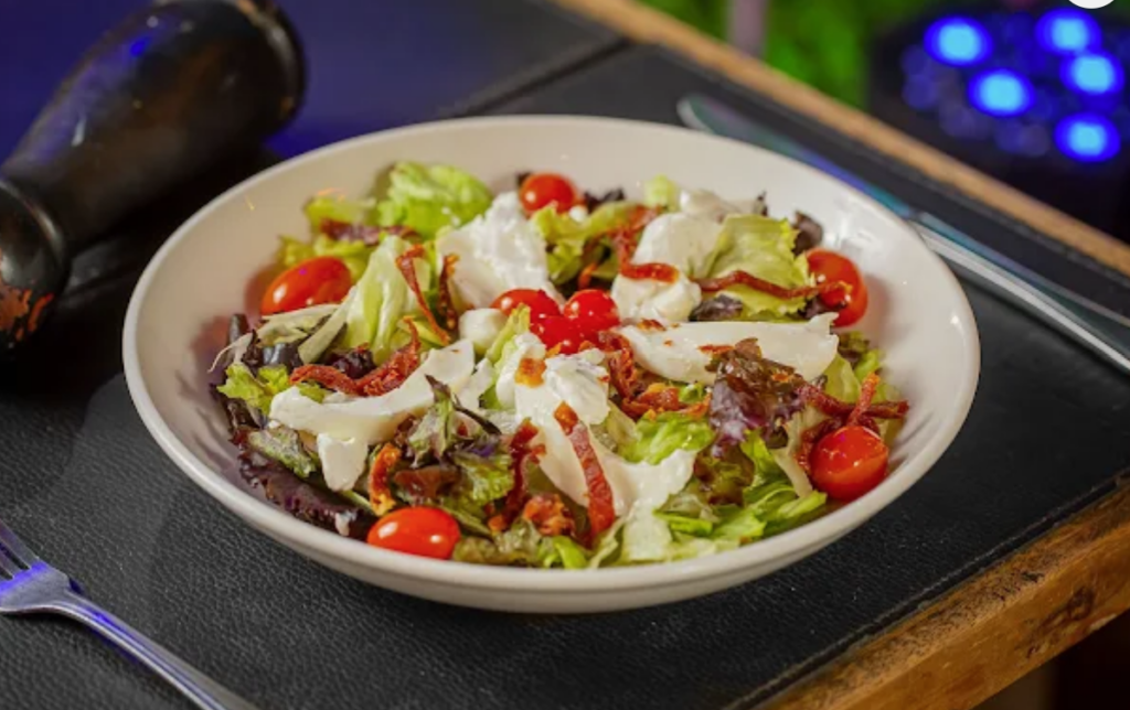 O cardápio acompanha a proposta descomplicada da casa, com opções como risoto de shimeji com tomates confit, bruschettas de gruyère com alho-poró e amêndoas e a Salada Mercadito, que combina folhas, burrata, presunto Parma e tomate confit.