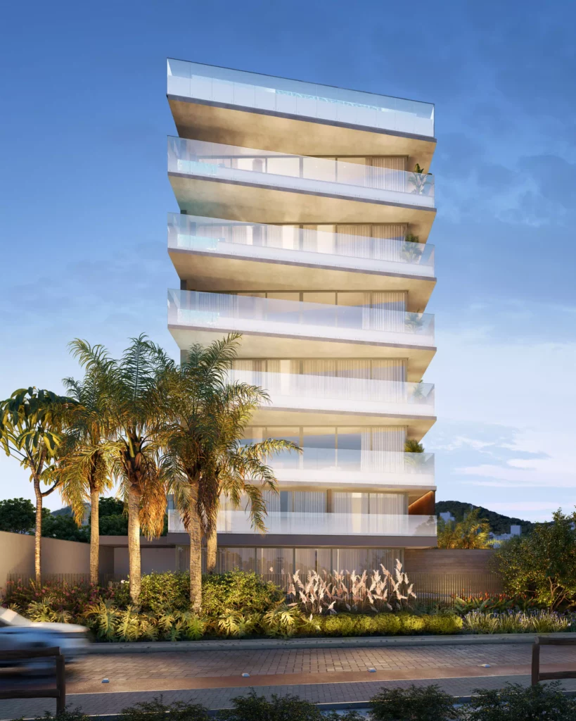 O edifício conta com a exclusividade de apenas seis apartamentos, um por andar. São cinco unidades de 323 metros quadrados privativos, e um duplex garden de 580m². Todos contam com quatro suítes, SPA, pé-direito elevado, varandas amplas e tecnologia embarcada com infraestrutura para automação, carregadores veiculares e gerador de 143 kVA. As esquadrias são assinadas pela Schüco, líder mundial em sistemas para portas, janelas e fachadas de alto desempenho. No rooftop, a piscina e áreas de convivência traduzem a estética minimalista e sensorial do Studio Arthur Casas. Já o paisagismo de Cardim, baseado em espécies nativas da Mata Atlântica, reforça o caráter de refúgio contemporâneo do residencial.