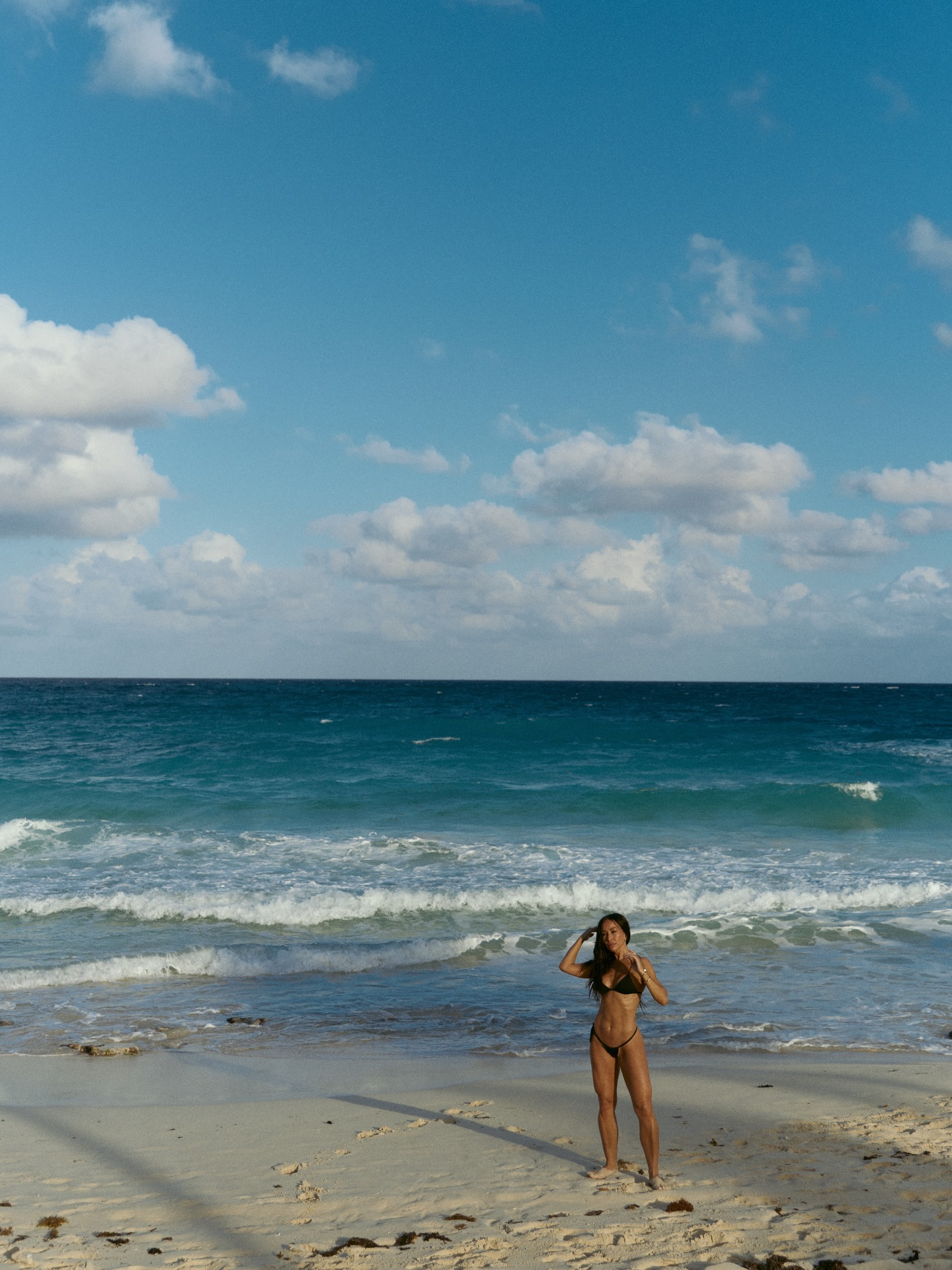 A apresentadora Sabrina Sato, 44 anos, aproveitou um raro momento de folga para curtir a praia e compartilhou o registro com seus mais de 30 milhões de seguidores nas redes sociais. Em um álbum de fotos publicado nesta quarta-feira (20), ela apareceu sorridente, usando um biquíni fio-dental preto, que destacou seu abdômen trincado.